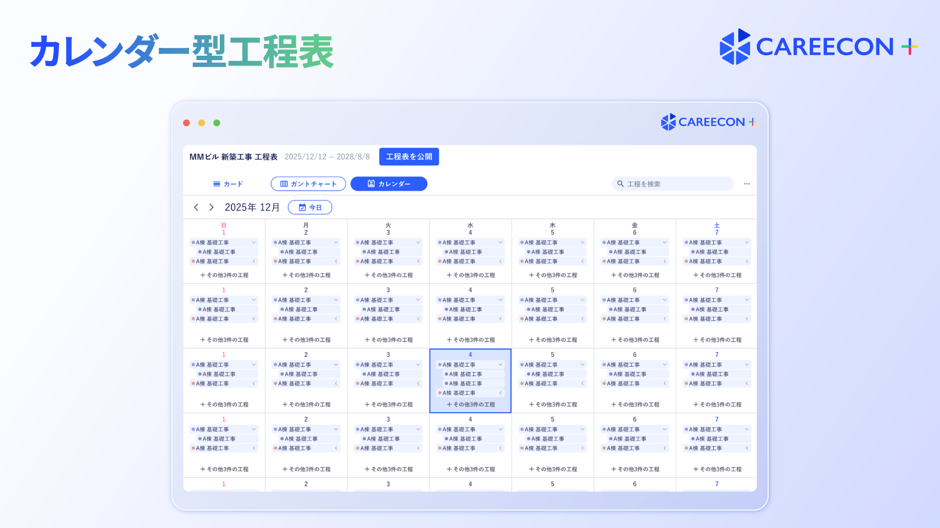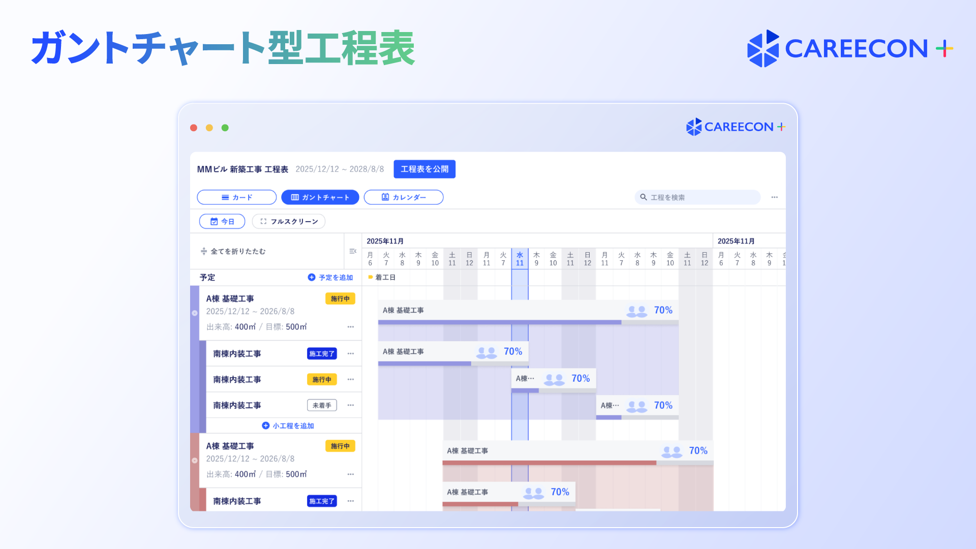 CAREECON Plus 施工管理機能の「工程表」を大幅アップデート